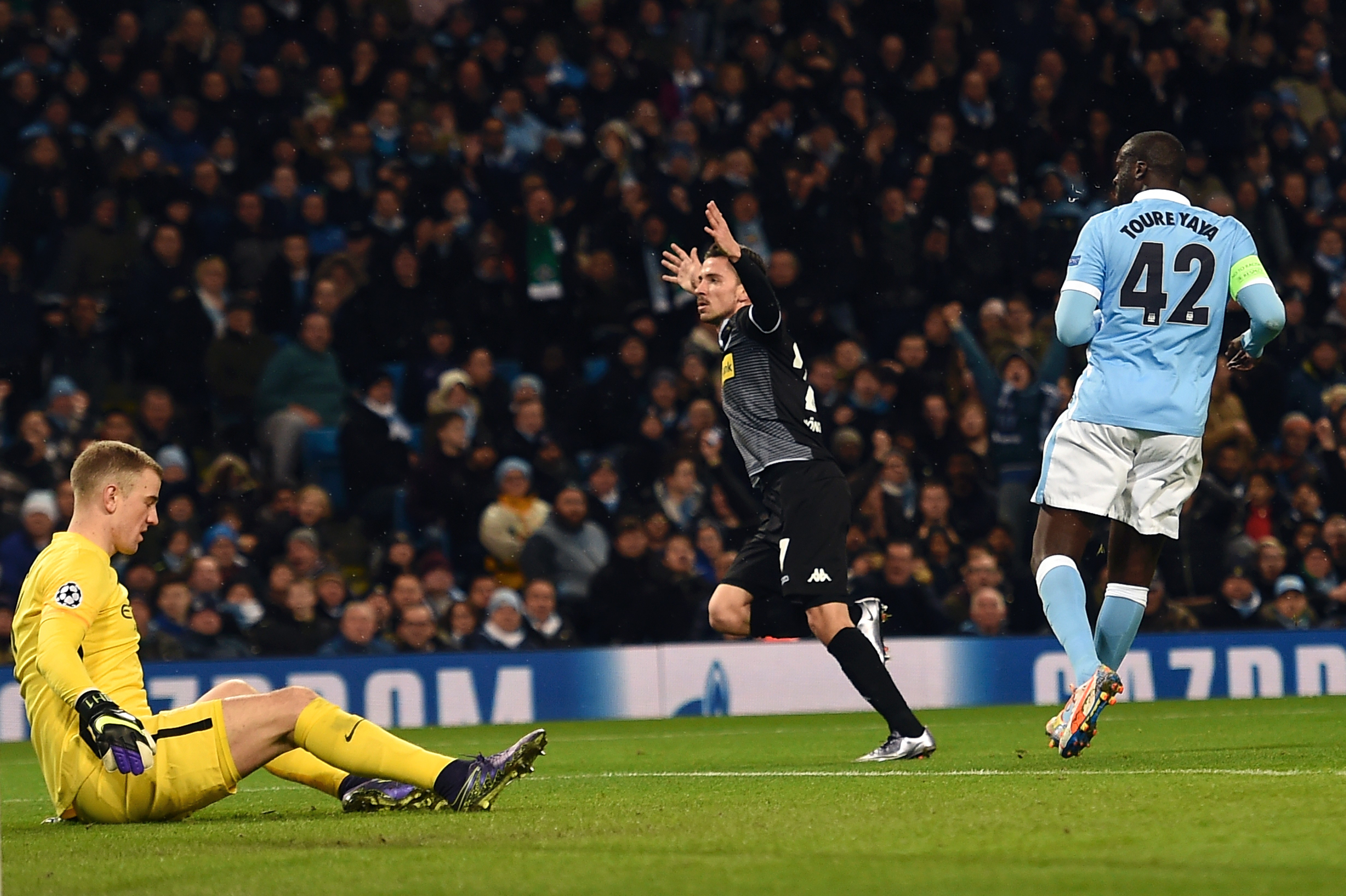 But Gladbach, who had not scored in either of their away Champions League matches this season, were level within two minutes when Julian Korb beat Joe Hart with a low strike.